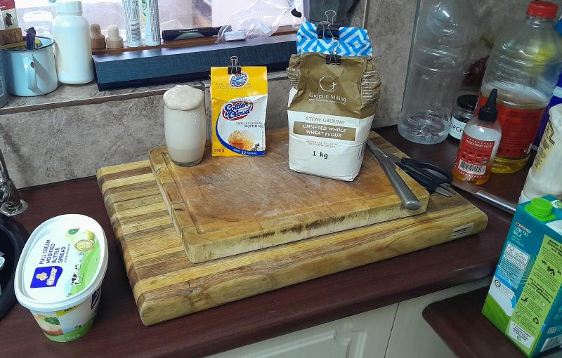 I had some leftovers of the floury persuation (vanilla muffin mix? Yea why not (there wasn’t a whole lot in the bottom of the packet)) and some decade-old molasses, resulting in Yet Another Experiment in Bread.