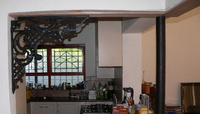 In the course of this all I spot that they also have cast iron woks, but small ones. Which is a Good Thing, since this was only days after Tanya bought me the Le Creuset. And I spot the corrugated vent pipe they use to vent gas geysers to the outside world. Figuring I could use this to join the miss-applied sewerage pipe to the extractor fan, I ask for a small bit of it. And she says “yea, my brother has off-cuts in the back of the bakkie, I’ll ask him to leave a bit here for you”.