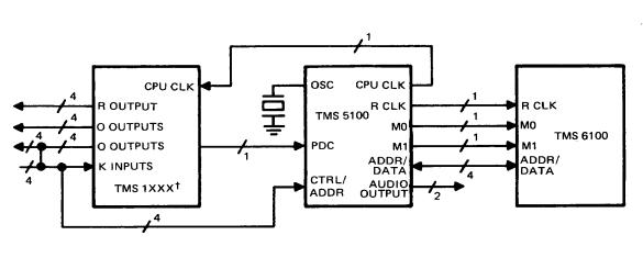 The VSP generates a clock at 640kHz and feeds it (divided to 320kHz) to the CPU. While the 4-bit control interface is bidirectional, in this implementation the CPU writes four bits to the VSP, but only reads one bit (CTL1) via the two-diode MUX (obviously at a time when there is no keyboard scan activity).