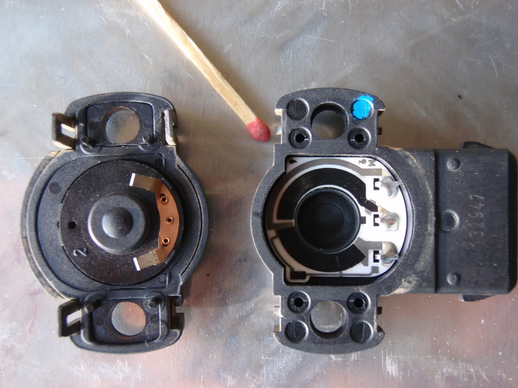 Unfortunately they didn't change the position of the slots in the interruptor plate. It's kind of tricky to see on the photograph, but you can check it out on the real thing (because maybe by the time you buy one they've fixed it). You need to mark cylinder #1 yourself, fit the cap and trace a line down from the tower, mark the body with a koki, turn the rotor and look at the interruptor plate. In my photograph you will see that the slot (OK, it would have been better if I'd put the rotor on, but you can trust me on this) is just starting to point at #1, while the interruptor place is fully inside the Hall Effect Sensor.