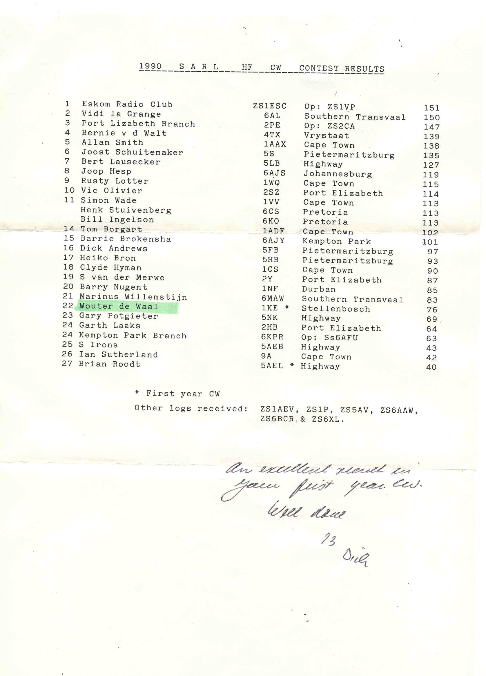 I was awarded 76 to win the Akyab trophy for the best 1st year CW contestant (in
