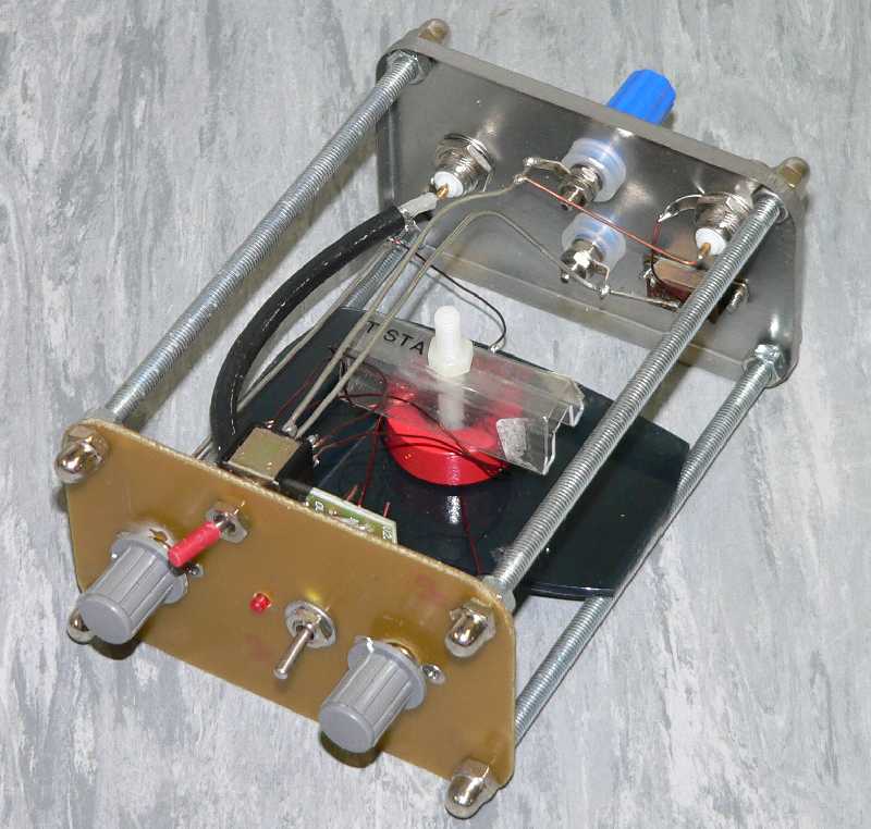 I still needed somewhere to mount the toroid. This is the front panel from some kind of a satellite TV decoder, just the right size. I epoxied that in and trimmed off the wings.